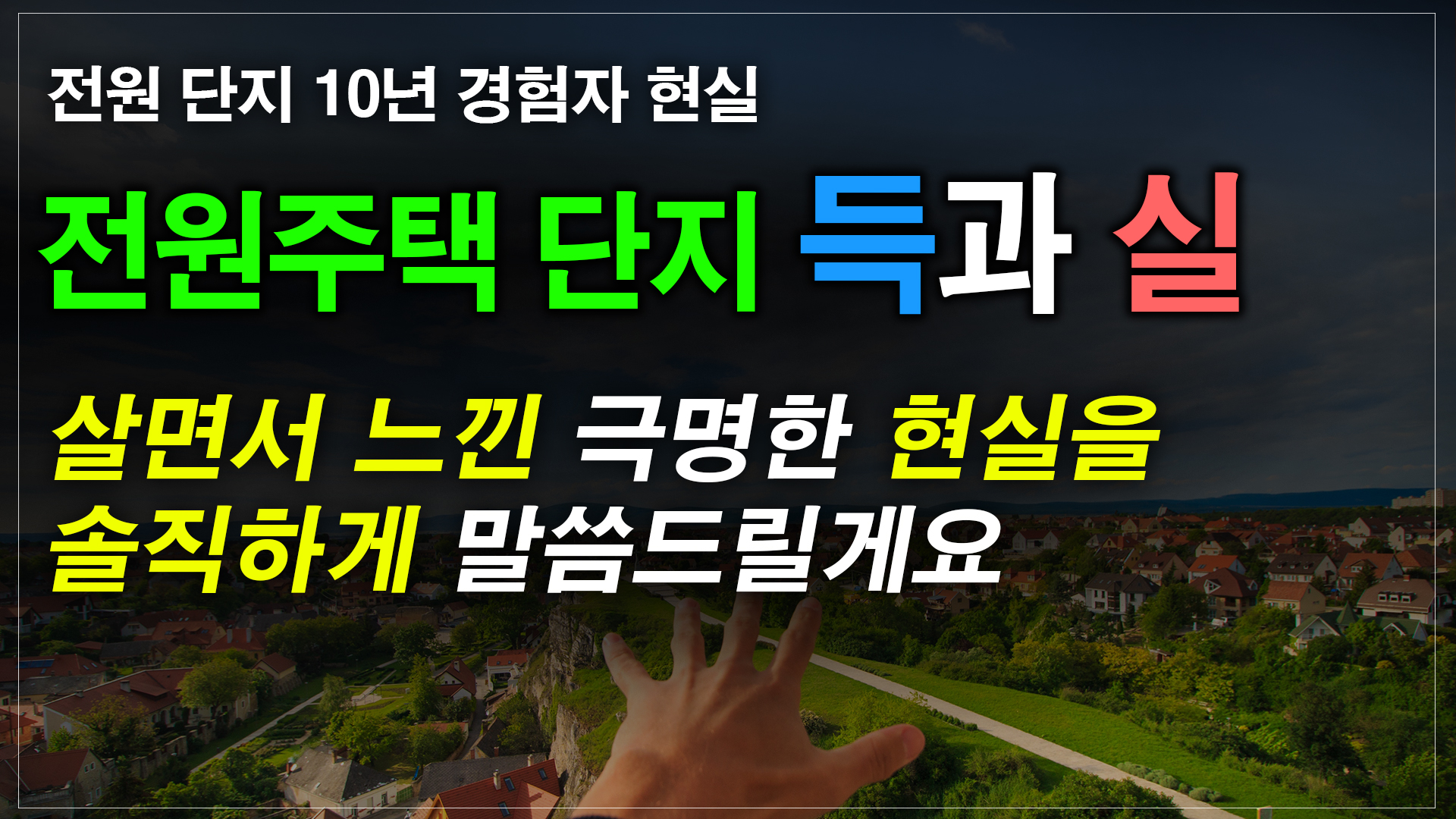 그래서 솔직한 정보를 이렇게 영상을 만들어서 공유하는 거예요 이제부터 영상에서 말씀드릴 단지로 구성된 전원주택은 과연 무엇이 좋고, 무엇이 문제이지 잘 들어보시고, 본인에게는 어떤 영향을 미칠지를 생각하셔서 결정하시면 되는 거요~