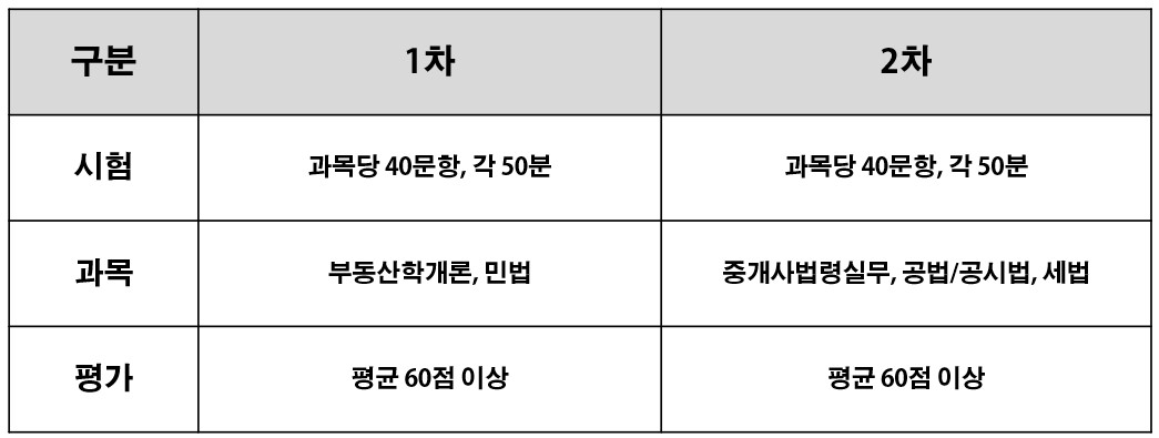 자격증 시험은 년 1회 정해진 날짜에 1, 2차를 함께 보고요 1차 시험 과목은 부동산학개론, 민법 및 민사특별법이고,
