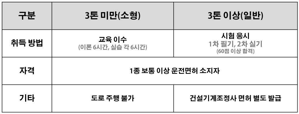 지게차는 자격증을 소지하고 있으면 아직도 취업이 용이하기 때문에 인기가 많아요. 지게차는 소형 지게차와 일반 지게차로 구분이 되고, 취득 과정이 조금 다른데요. 3톤 미만 소형 지게차는 별도에 시험 없이 2일간 교육 과정을 수료하면 면허 취득이 가능하고요. 일반 지게차는 필기와 실기 시험을 합격해야 자격증을 취득할 수 있어요