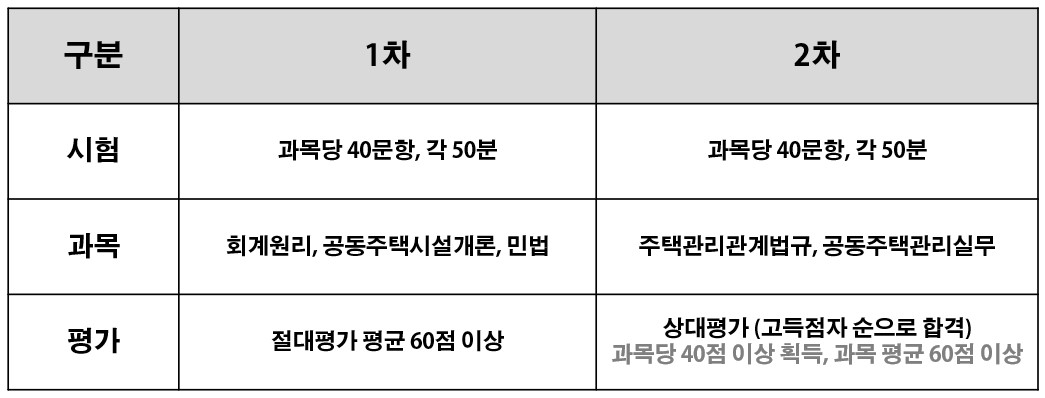 2차는 주택관리관계법규, 주택관리실무를 과목당 50분씩 진행하고 객관식과 주관식문항이에요