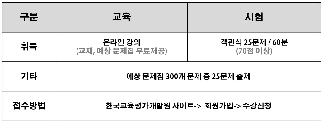 비교적 난이도가 낮아서 시니어 분들도 자격증 취득이 어렵지 않아요. 지역별로 전문교육기관 있기 때문에 잘 알아보시고 선택하시면 됩니다. 국민 내일 배움카드를 활용해서 국비지원으로 교육이 가능한 곳도 많으니까 잘 알아보시고 시작하세요.