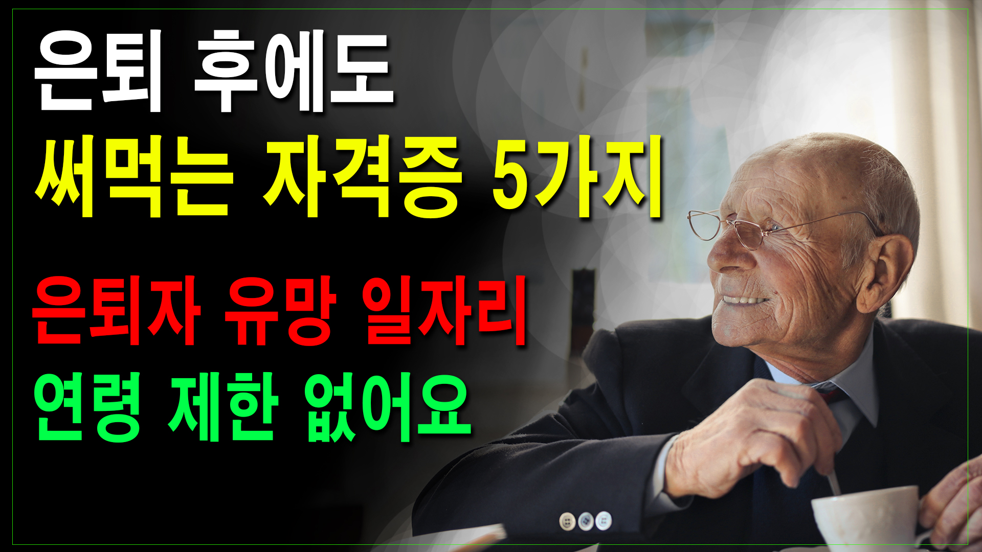 오늘은 은퇴를 하신 시니어 분들의 경제활동을 위해서 취득하면 좋은 자격증 5가지를 말씀드릴 하는데요. 우선 5가지 자격증을 선정한 기준부터 말씀드리자면,