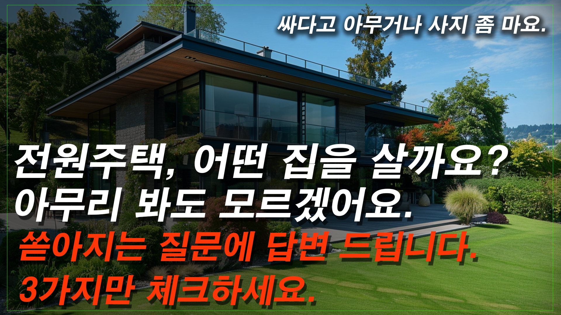 전원주택 구매를 하고 싶은데 여러 가지 '복잡한 게 너무 많아서 뭘 사야 할지 잘 모르겠다~',
